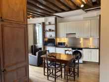 セーヌ川にほど近く、アパルトマンからすぐの川向こうにはノートルダム寺院という素晴らしい立地。広々としたワンルームでパリらしい梁のある天井にも趣があります。室内は2026年に改装工事が入ったばかり。 |