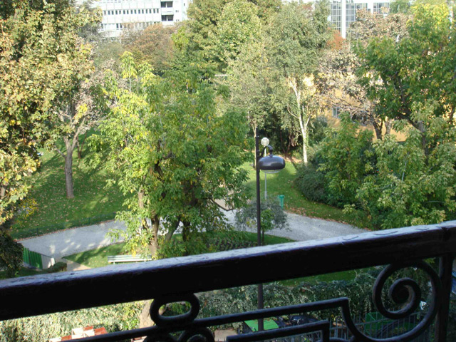 下は道路ですが車の通りは少なく、窓は2重ガラスなので騒音の心配はなし。アパート全体が公園に面していて、日当りが良く、眺めも抜群です。お部屋で料理を楽しんだり、ゆったりとした時間を過ごして頂けます。
